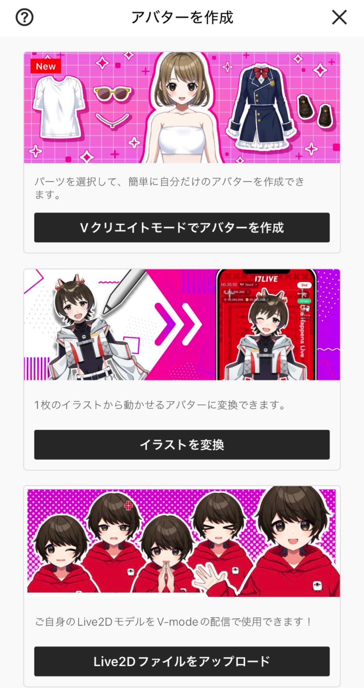 でも、バーチャル配信のために自分で絵を描いたり動かしたりするのはなんだか大変そう……。そんなイメージを覆してくれる新機能『Vクリエイトモード』(略称:Vクリ)が『17LIVE(イチナナ)』からリリースされたそうなので、早速体験してみました!