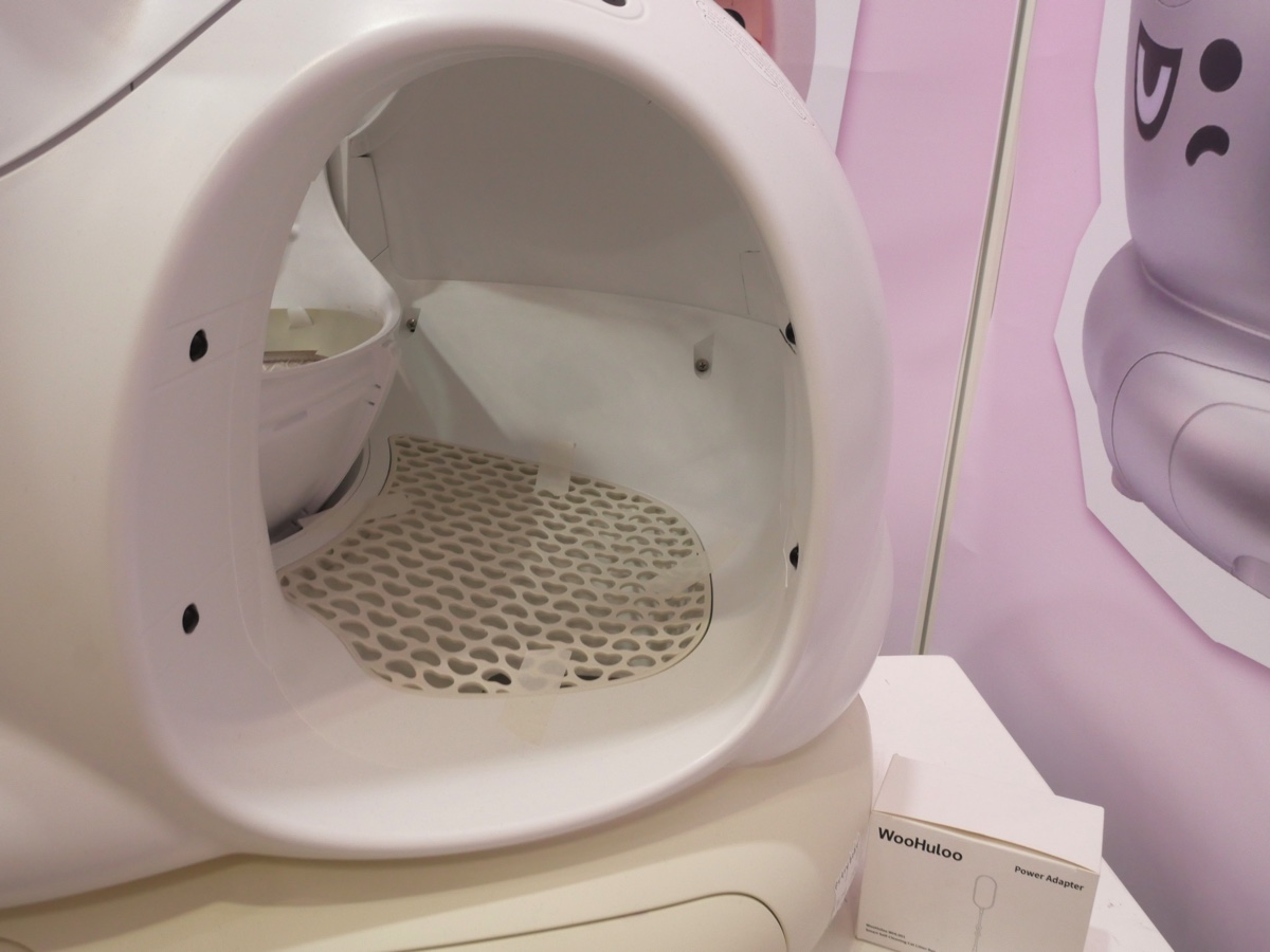 そしてネコちゃんに対しては、全自動トイレがかなり多かったように感じる。こちらはWooHuloo(ウフルー)というブランドの『スマート猫用トイレ - ピンク』だ。まずこの可愛らしいデザインが会場で目を引いた。