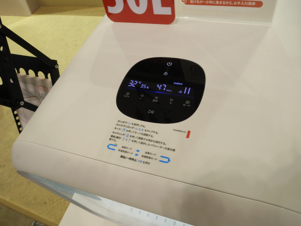 こちらはhomerunPETの『Drybo Plus(ドライボ・プラス)』というドライヤーハウスだ。本商品は、室温から40度まで温度設定が可能。風圧も4段階調整することができる。スタッフの方いわく、短毛の子であれば20分程度で乾くようだ。床からも風が噴き出てくるので、お腹や足回りも楽に乾かすことができる。