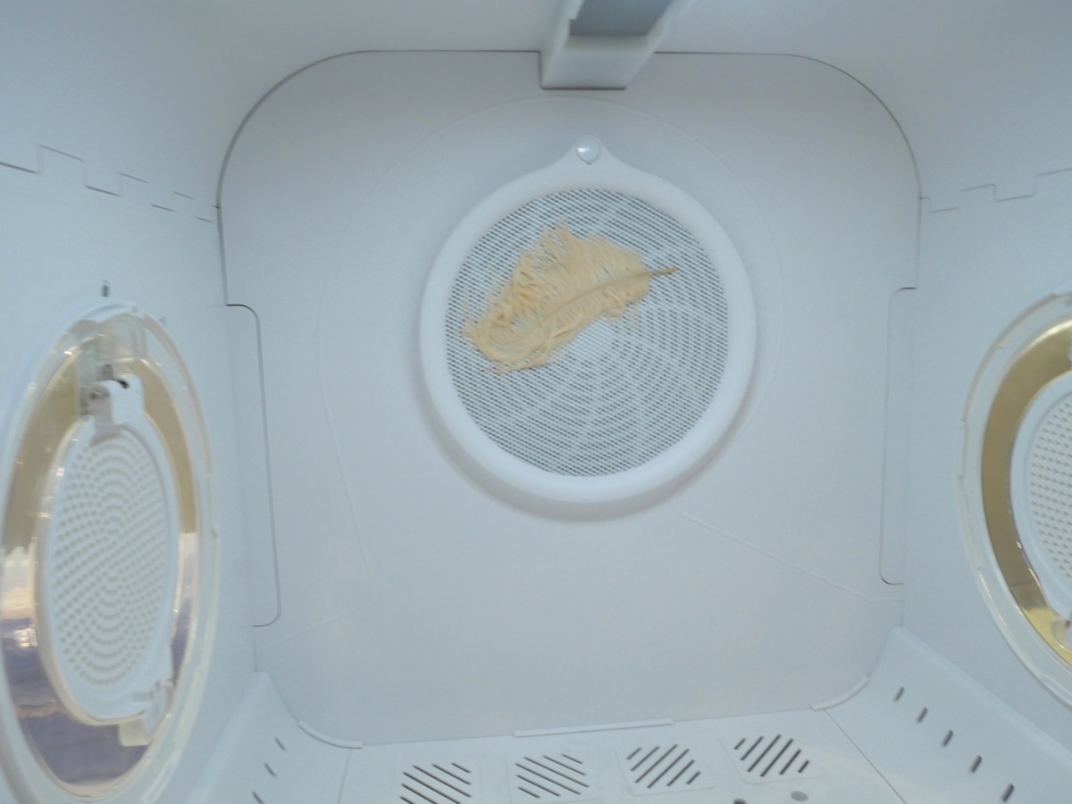 本商品は、奥の壁についているフィルターに抜け毛がピタッと吸い付くようになっている。換毛期に入った子を乾かすときなどには、1箇所に抜け毛が集まってくれると、かなりお掃除がしやすくありがたいのではないだろうか。