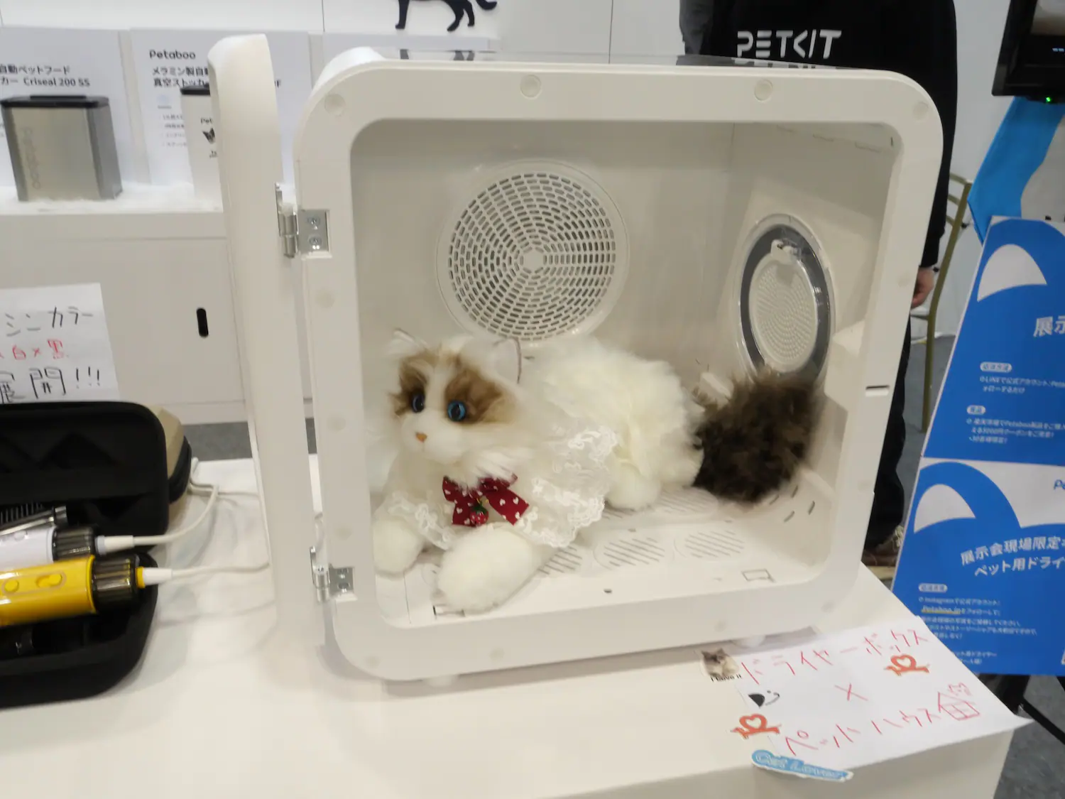 さっそく「ペットテック」のカテゴリーを見ていくことに。筆者が今回1番強く感じたのは、「ドライヤーハウス」がかなり注目されているということだ。「ペットテック」のカテゴリーでは26店舗が出店していたのだが、「ドライヤーハウス」を展示している店舗がかなり多かったように感じる。