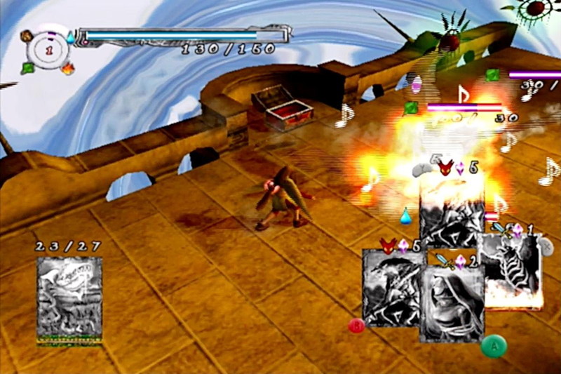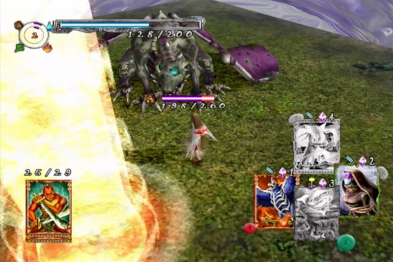 だが、実際は使うたびにデッキから消失していくカードをやりくりしながら戦うという消耗戦。ランダム選出の仕組み、効果の組み合わせの要素自体はあるが、肝心のカードがなんと1回だけの使い切り。30枚あったのが29枚、28枚と、使えば使うほどデッキから消えていくのである。使えるカードが全部なくなれば、文字通り手も足も出なくなってしまうのだ。