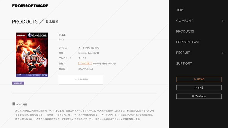 ちなみに本作はゲーム中にいろいろと覚える事柄が多い。だが、ありがたいことにフロム・ソフトウェア公式サイトの製品情報ページでは、2025年現在も『RUNE』2作の取扱説明書のPDFデータが公開中になっている。
