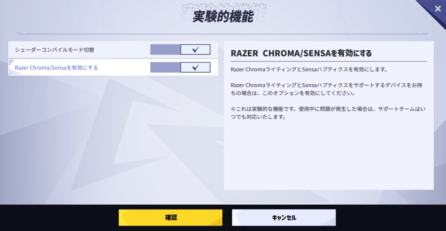 というわけで、いざ設定へ。手順は簡単で、ゲームランチャーの設定画面で「Razer Chroma/Sensaを有効にする」にチェックを入れてやれば、ゲーム側の設定は完了だ。