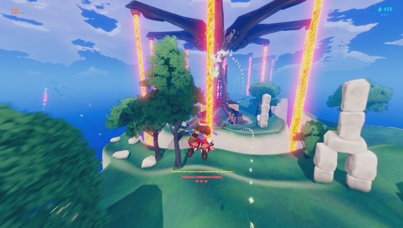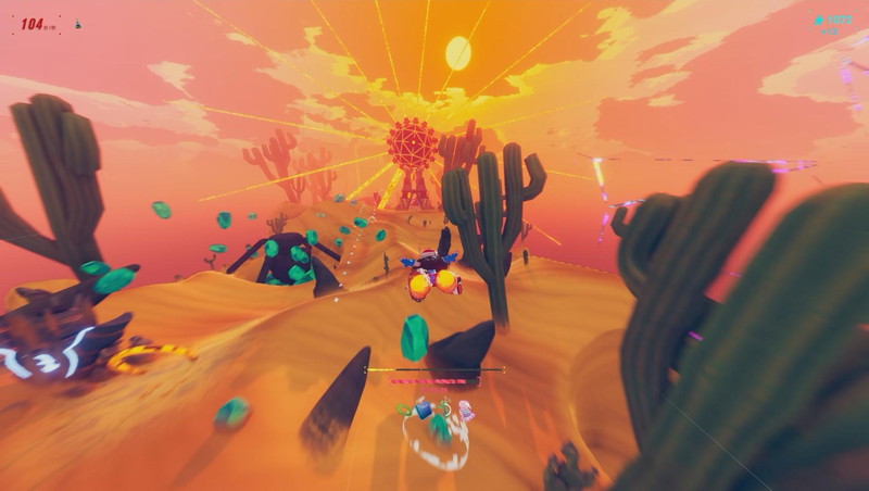 ステージはランダム生成でプレイのたびに中身が変わる。レーザーネットや建築物が立ちふさがる地区。サボテン・氷柱・樹木が密集する地区。崖だらけの地区。そうした地区をランダムに並べたつくりだ。何度もプレイすれば地区を見慣れて障害物の避け方が身につく。エリア完走に失敗しても、主人公強化やスキル購入に用いるアンロックポイントを得るのでリトライを無下に扱わない。