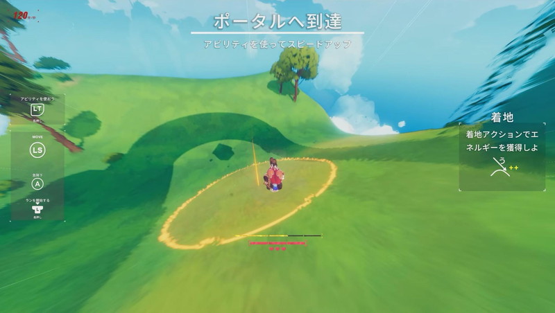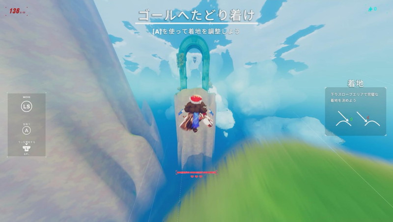 主人公に対してなだらかな場所に着地すればパーフェクト着地となり、スキルゲージが増えてスキルを使った加速ができる。あらゆるジャンプでパーフェクト着地を決めたなら、スキルでガンガン加速していける。