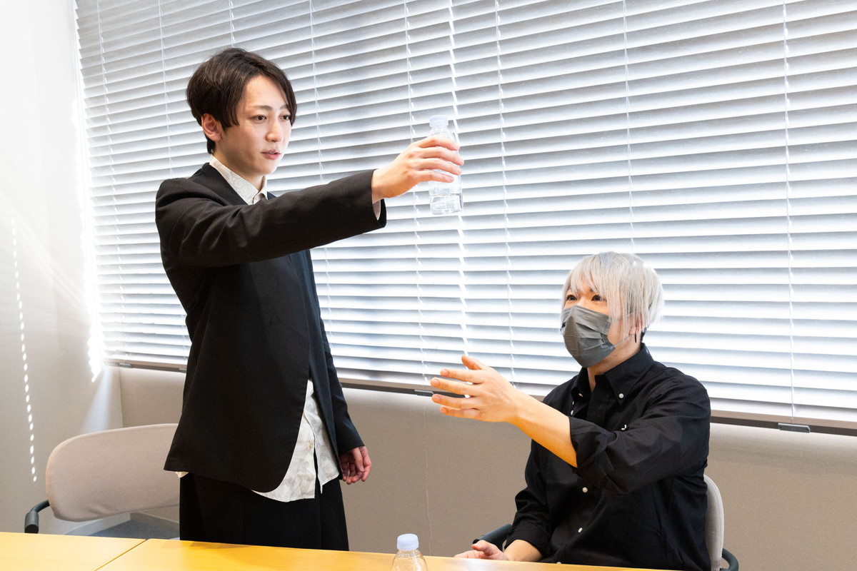 たとえばなんですけど、僕がいまからペットボトルをランダムなタイミングで上から落とすので、歌広場さんは下で手を構えておいて、左手一本でキャッチしてみてください。