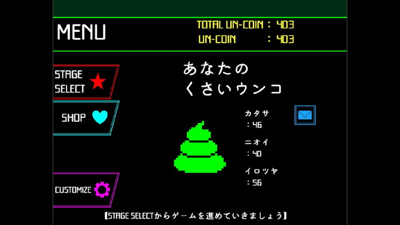 手に入れたUNCOINはガチャを回すのに使用できる。ガチャではウンコの肩書き(デカい、くさいなど)と、ジャンプ時のエフェクトが出てくるので、好きなだけカスタマイズすることができる。君だけの最強のウンコを作ってほしい。