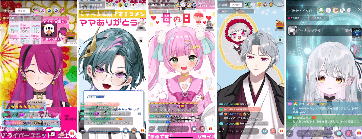 また、別のVライバーの配信では、母の日をリスナーがどう過ごしたのかも話題に。Vライバーから「母の日に何かした?」と問いかけると、「LINEでありがとしといた(*^^*)」「同じく」「言葉にするって大切よね!」というコメントや、「ワシはビール送った」「リュック欲しいっていうからAmazonでポチった」「花いらんって言われたから諭吉3枚送った」と日頃から母親の好きなものや欲しいものをリサーチしていたエピソードから、母親の価値観を理解した上であえて現金を贈るリスナーまで。一方で、「最近は母と距離を置いていて・・・」と現状をつぶやくリスナーに対して、「母親との距離感って色々だよね」とVライバーが自身の考えを伝える一幕もあった。