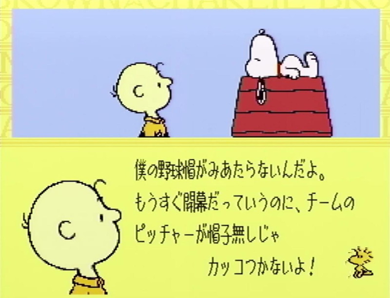 アドベンチャーゲーム的構成の「チャーリー・ブラウンの野球大好き!」も、割と入念な調査が求められる場面が多く、かつて『ふぁみこんむかし話 新・鬼ヶ島』などのアドベンチャーゲームにも携わったパックスソフトニカの手腕が炸裂している。