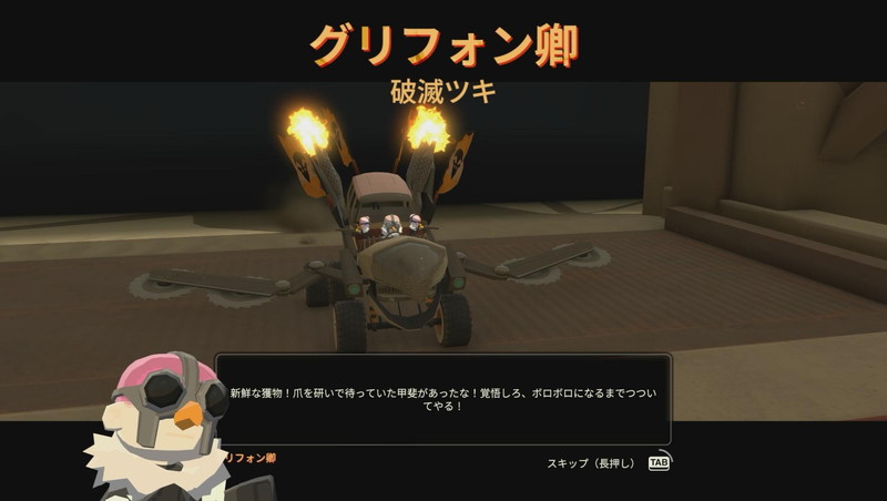 イロモノの見栄えだがパーツのステータスは細かい。気持ちよく敵族を倒せるか、クルーは生きて帰れるか、アクションパートと密接に関わっている。そのうえで、豊富なファッション用パーツがロールプレイを誘っているのは面白い。パーツ欲しさに任務をこなし、パーツ試しで任務をこなせば、アクションとエディットが小気味よく回りだす。世紀末カーライフのアクションRPGは誰でも楽しめる仕組みなのだ。