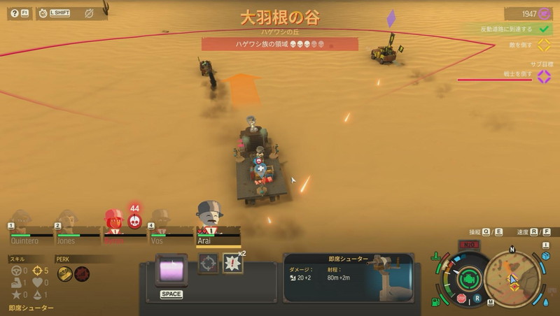 本稿冒頭であげたとおり、本作プレイの前にオマージュ元の映画で世紀末カーライフを予習することを強く勧める。もちろん予習ナシでも問題ない。弾丸雨飛の真っただ中を突き進み、敵を倒して素材を集めるアクションRPGの仕上がりだ。