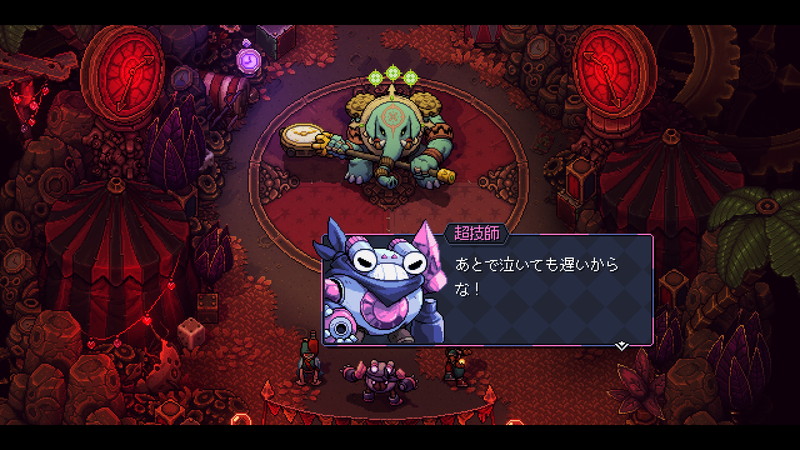 戦闘システムに関しても、基本は変わらない。サーカスでは腕力ではなく魅力が物を言うということで、早々に至点の力を奪われてしまったふたりは、曲芸師と軽業師のクラスにチェンジし、芸を見せつけることで人形使いへと近づいていくのだ。新たに描き下ろされたドットアニメーションはどれもヌルヌル動き、それこそスタジオの底力を感じさせた。