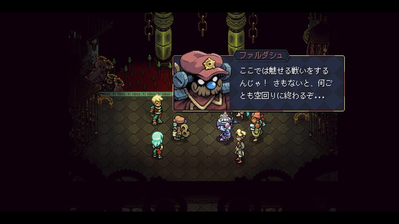 本編を遊んだプレイヤーならわかる通り、本作は非常にシンプルな出来のJRPGライクだ。『クロノトリガー』のようなコマンドバトルとコンボ技に『スーパーマリオRPG』のようなアクション性が混ざった戦闘を楽しみつつ、丁寧に描かれたドット絵の背景と懐かしい塗りのアニメ-ションが眺めるという……JRPGファンがJRPGファンのために作ったゲームである。