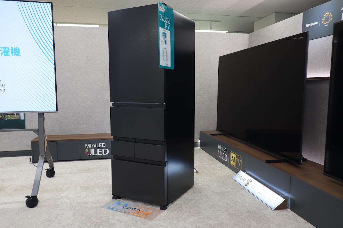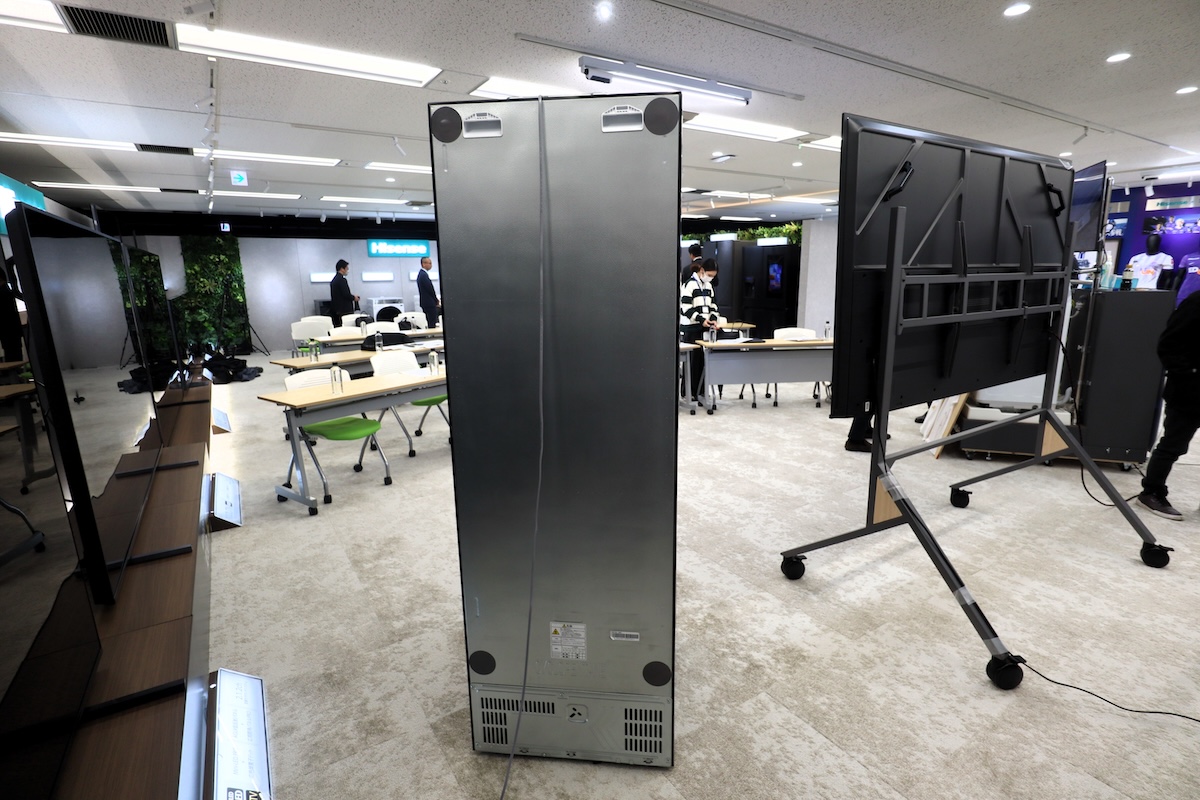 「日本市場は特別。中国を含め海外では本体が大きく扉は2、3枚のシンプルなモデルが一般的。しかし日本では家具の隙間にミリ単位でぴったり収まることを要求され、扉は機能ごとに細かく別れている。今回、そんな日本の環境に合わせ、日本専用モデルを開発した」と、ハイセンス関係者は説明する。