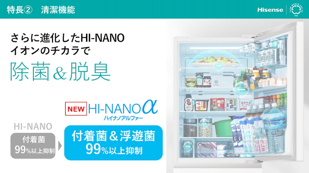 なお、ハイグレードモデルの『HR-DCH450』は、高濃度のイオンで除菌・脱臭する「HI-NANOα」を搭載するほか、スマートフォンアプリ「Connect Life」で庫内の在庫管理や冷蔵庫の設定変更、速冷金属プレートの付属といった付加価値を有する。