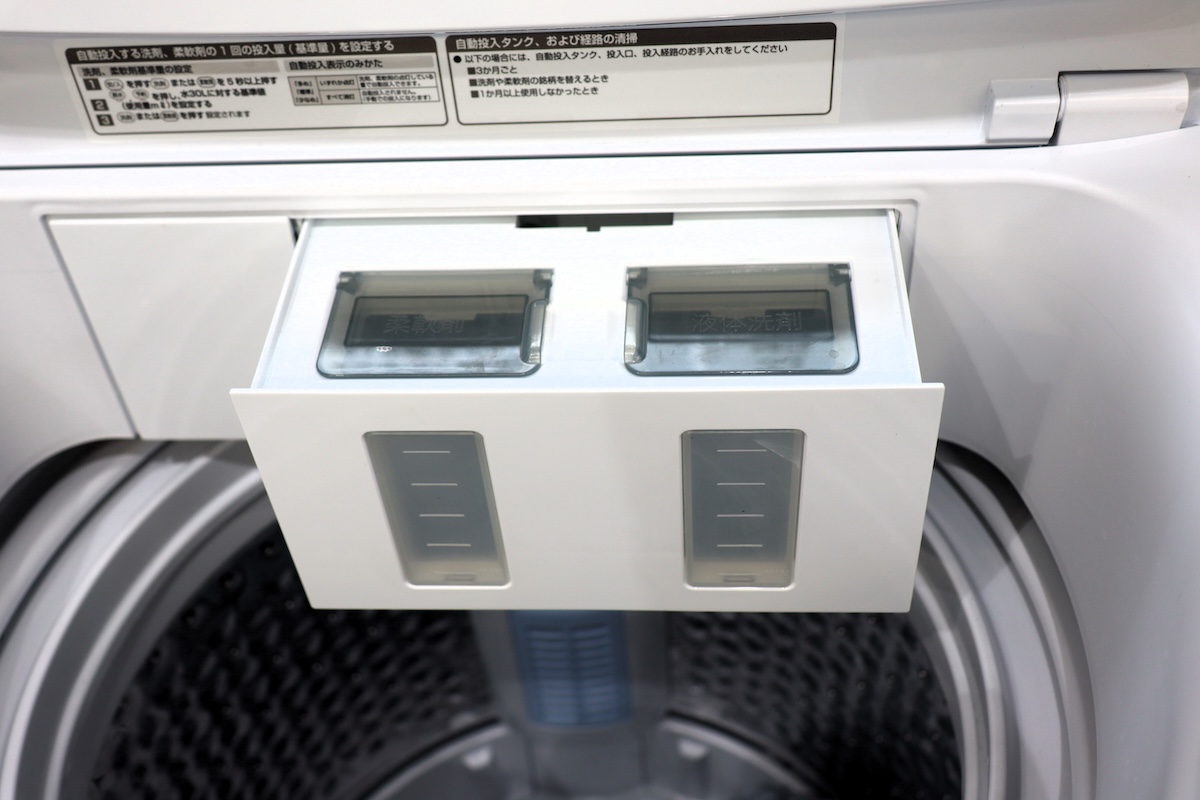 3機種とも液体洗剤・柔軟剤の自動投入機能を搭載するのが特徴。5.5kgクラスで自動投入機能を搭載するのは国内初となる。自動投入タンク容量は各550mlで、取り外してお手入れができる。