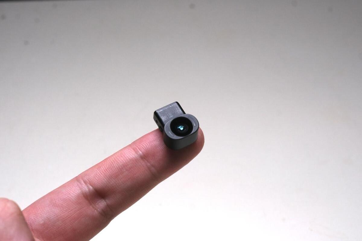 『XREAL Eye』は1200万画素、f/2.25の小型レンズだ。指先に収まる大きさ、重さ1.35gというサイズ感は単一のデバイスとしてあまりにも小さい。この重量なので装着感はゼロ、重心の変化も感じない。