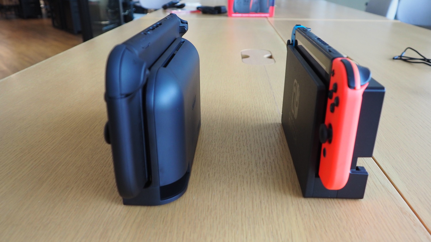 あらためて前機種の「Nintendo Switch」と並べて見比べてみると、明らかに存在感が増しており、マットブラックな質感も相まってこちらの期待と想像以上に所有欲を満たしてくれるハードとなっていた。