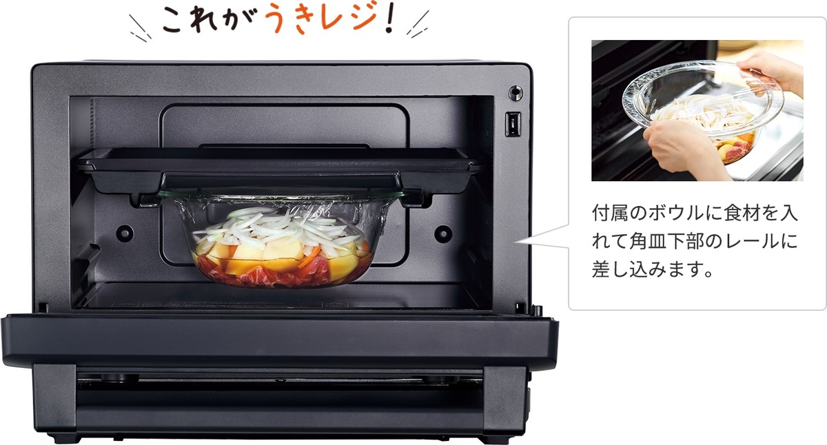 答えは、『象印マホービン EVERINO』が採用した、器を浮かせて温める機能の「うきレジ」。電子レンジにありがちな「外は温かいのに中は冷たい」という温度のムラを解消できるという。容器を浮かせることで、全方位から温められるので、食材全体に味がしみ込み、より美味しく調理ができる。