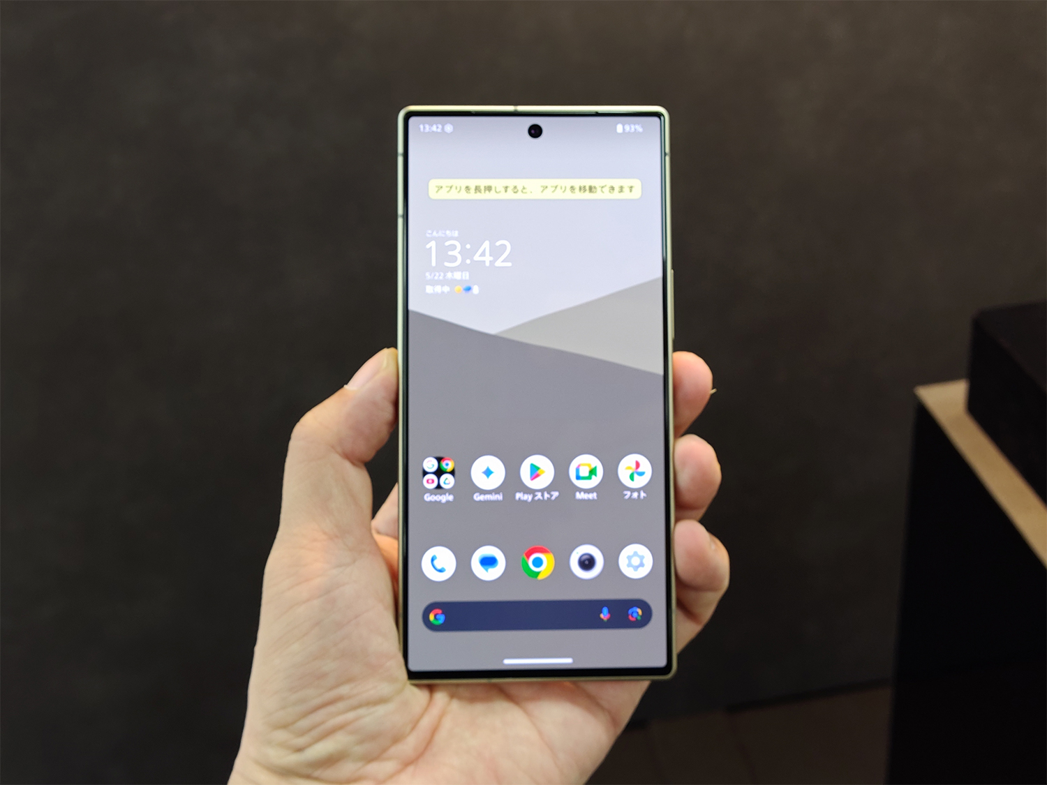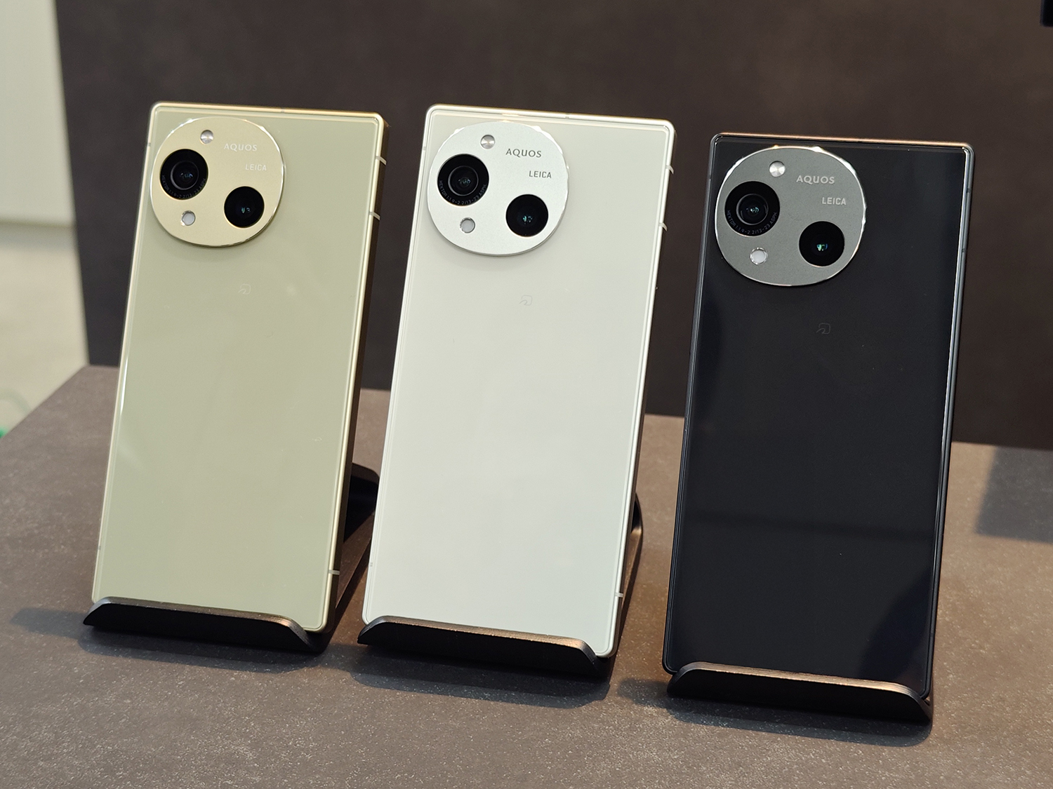 本体のカラバリはカシミヤホワイト、トレンチベージュ、チャコールブラックの3色。表面はガラスで覆われ光沢感ある仕上げになっている。カメラ周りの非対称なデザインなどは『AQUOS Wish5』同様、miyake designによるものだ。