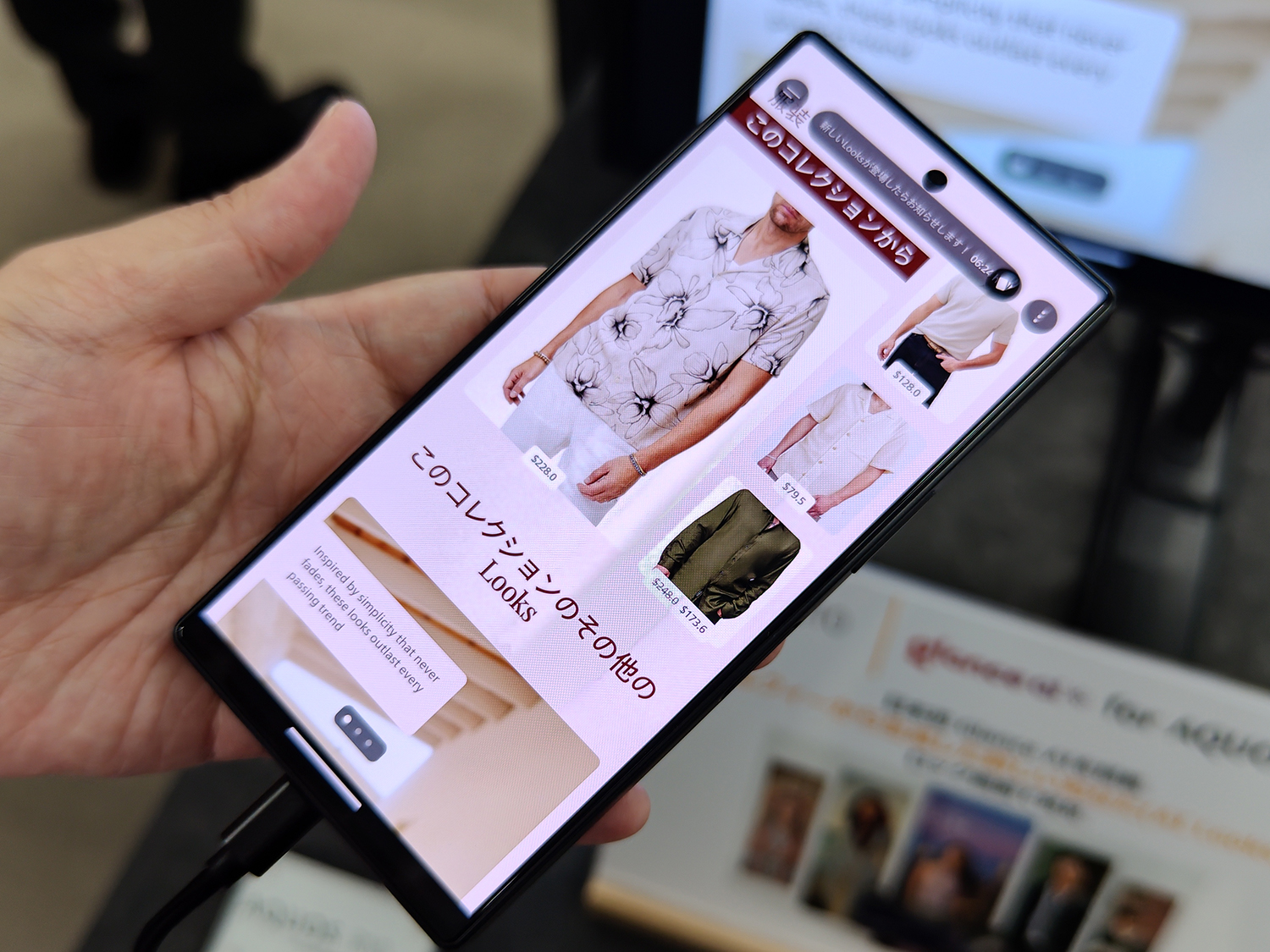 他にも迷惑電話のAI自動判別による自動音声応答や、グーグルのかこって検索なども使える。さらにSIMフリーモデルのみで使える『glance ai for AQUOS』はAIの新たな可能性を見せてくれる。顔写真を撮影後、性別や体型などを選び、つづけて表示されるファッションの好みをいくつか選ぶと、生成AIがそれに応じて実際のファッションブランドの洋服を着た自分の写真を生成してくれる。写真は複数パターンが自動生成され、毎日入れ替えて表示してくれる。なおこの機能はSIMフリーモデルだけに搭載予定だ。