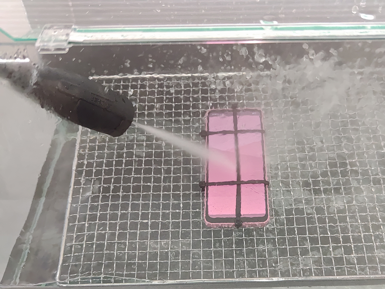 また「つよかわ機能」である耐コンクリートの落下耐性、MILスペック対応、ハンドソープ洗浄やアルコール除菌ふき取りも可能な機能に加え、IPX9の防水に対応。水道水の40倍の圧力の高圧水や80度の高温水にも耐えられる。ラフに扱っても本体が壊れない、なかなか丈夫なスマートフォンなのだ。