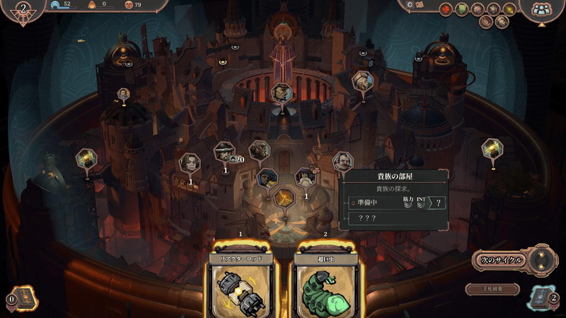 ゲーム開始時点ではロケーションで起きるイベントはすべて伏せられており、何が起きるかはなんとなく推察するしかない。ランを重ねていくことで徐々にわかってくる手探り感がたまらない。