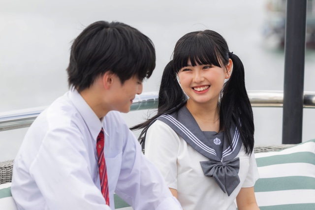 その“1名”を除いて、全員が顔合わせをした状態で旅がスタート。すると間もなく、ホワイトとグレーの淡い色使いなセーラー服に身を包み、ツインテールを揺らしながら、今回の主人公が降臨する。いまや、稀代のバズ請負人。その名を出せばSNSが盛り上がる、“おひな様”こと、ひな(長浜広奈)である。