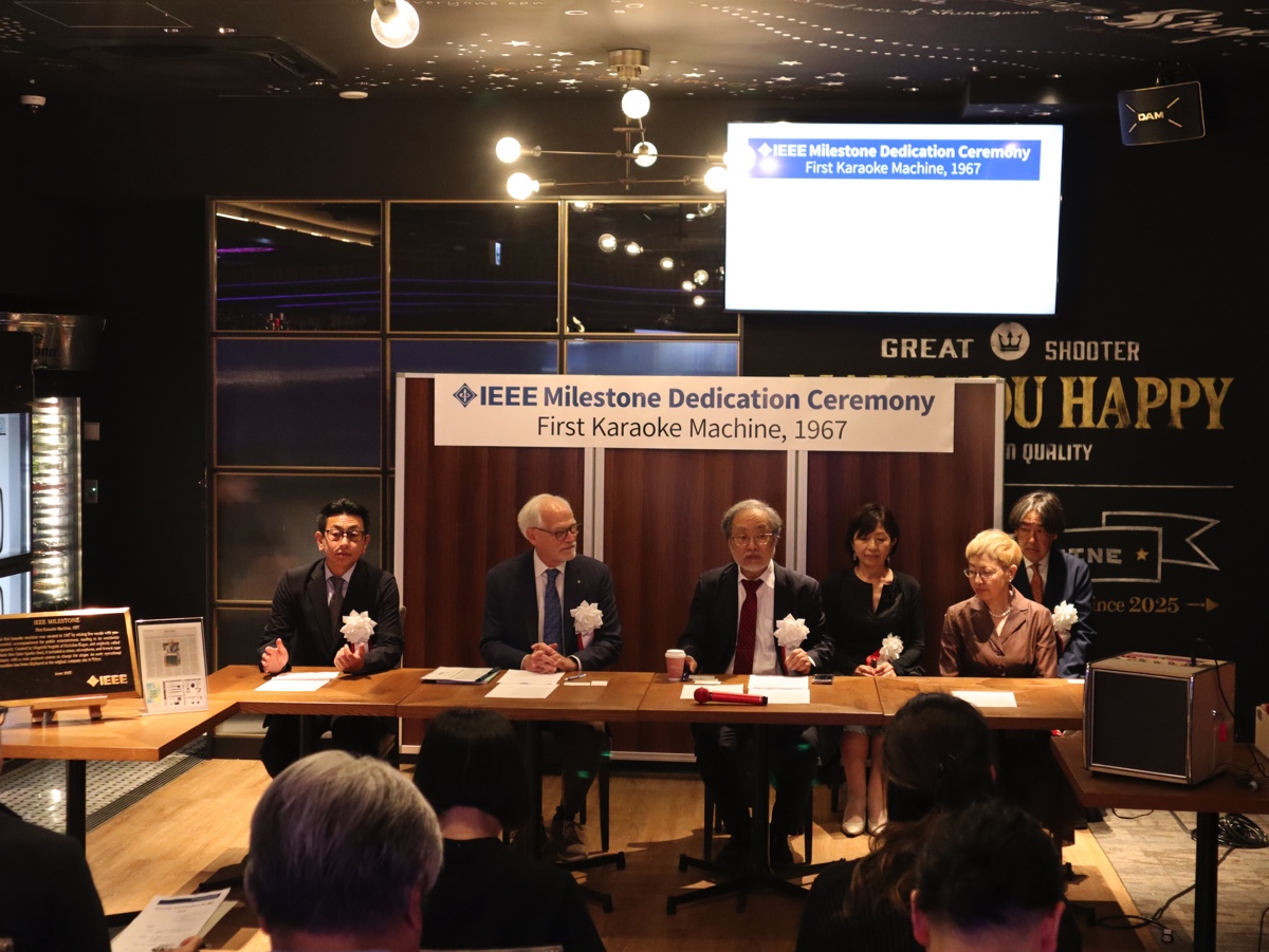 式にはIEEEの2024年度会長のトム・コーリン(Tom Coughlin)博士、2020年度IEEE会長の福田敏男教授、根岸氏の家族である長女・対馬真澄さん、次女・高野淳美さん、長男・根岸明弘さん、そして全国カラオケ事業者協会の代表理事・佐久間秀樹氏が参加した。