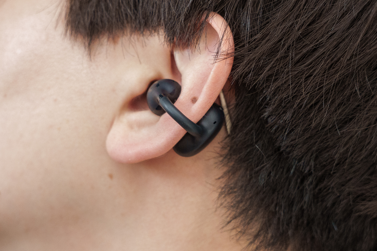 まず気になるのは、やはりその“つけ心地”だろう。最近は街中でもイヤーカフ型イヤホンを見かける機会が増えてきたものの、自分としてはどこか「食わず嫌い」なところがあり、慣れ親しんだオープン型イヤホンばかりを使っていた。