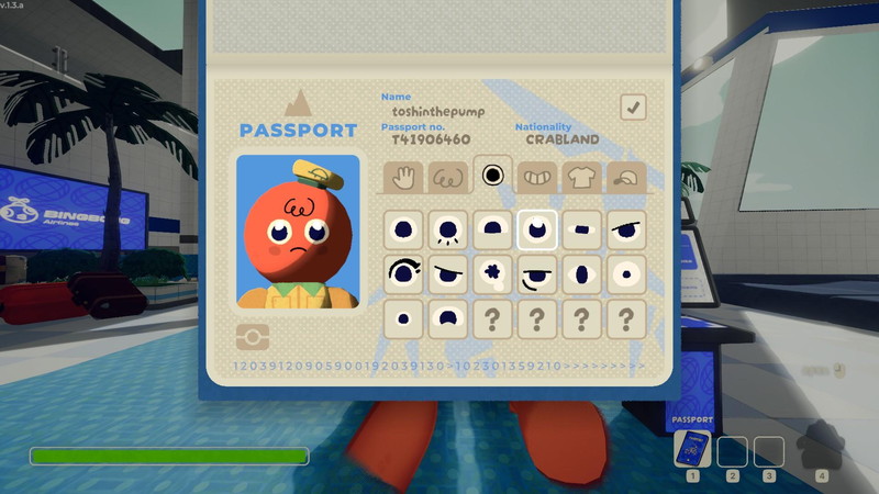 ゲームを起動すると、空港のロビーからスタートする。パスポートを開いて(クセはあるが)かわいらしいキャラクターメイクを済ませてから、フレンドを呼ぼう。