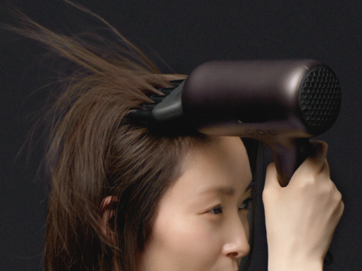 このドライヤーがすごいのは、髪へうるおいをあたえる機能だけではない。美しく、速く乾かすことができるのだ。パワフルな高回転モーターがついていて高圧・高速の風を生み出す。そしてそれを速乾ノズルが拡散させることで広い範囲に強い風を届けてくれる。それによって、髪を乾かす時間を短縮できるだろう。