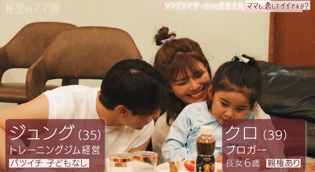 そして、2組目の成立カップルは、『あいのり』で人気を博したクロと、トレーニングジムを経営するジュング。ジュングは、参加者のなかで唯一の子なし男性。シングルファーザーとの恋を目指して旅に参加したクロは、「(子なしなことが)最初はマイナスに感じていた」と振り返る。しかし、じっくりと彼の中身に触れていくうちに、自然と惹かれていったようだ。そしてカップル成立後、「わたしから、初めてのお願いしていいですか? キスがしたいんですけど!」と“見せ場”を作ったクロは、さすが恋愛番組のベテラン。2人のキスシーンのあまりの美しさに、MC陣もうっとりしていた。