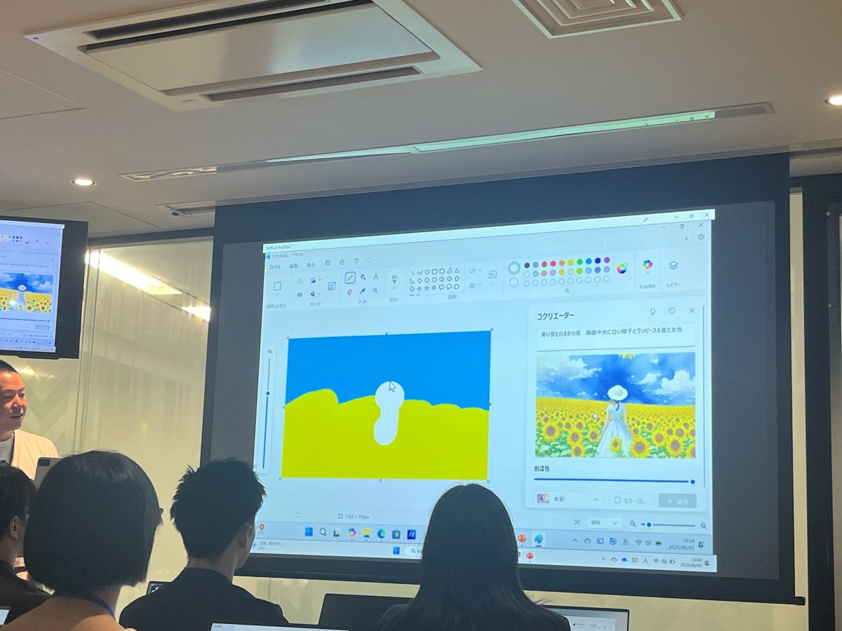 一方、現在高校3年生の藤本さんは、「自分にしかできない面白いことをやりたい」と語ってくれた。これまでスマートフォンで資料作成を行っていたため、PCを本格的に使うのは今回が初めてとのこと。特に、「ペイントコクリエイター」で自分の描いたイラストとAI生成画像の違いを比較してみたいと話していた。