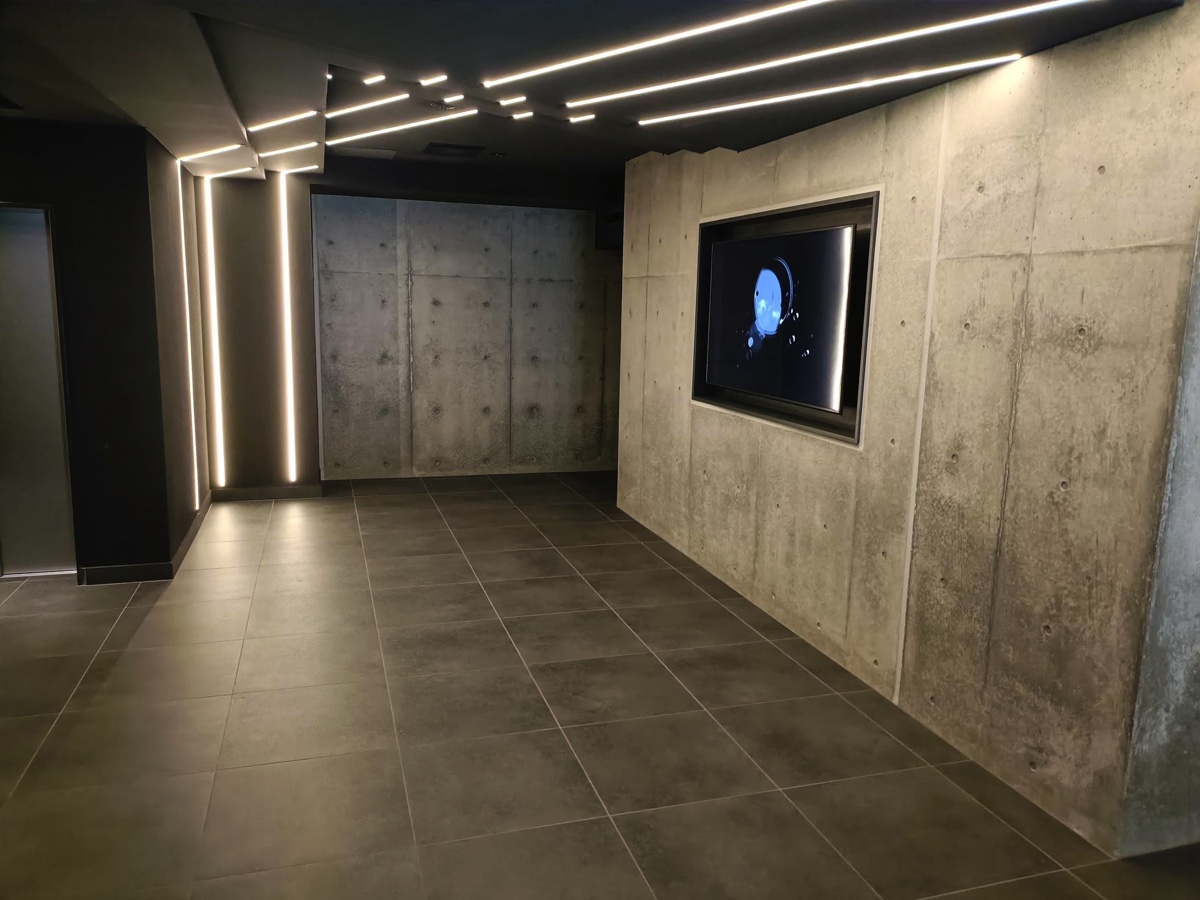 マンション内に早速入ってみると、黒を基調としたシックな内装に心を惹かれる。エントランスのスピーカーから流れるのは、林ゆうき氏がTRACKシリーズのために作曲したオリジナル楽曲『Borderless Resonance』。劇伴の名手によるこの音楽が、住人の創作意欲を刺激してくれる。まさに“表現者のための住まい”だと言えるだろう。