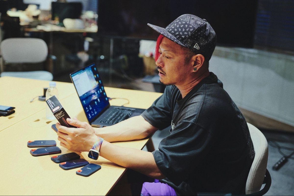 チェンコ:以前、MAN WITH A MISSIONのライブ公演用の映像を演出したことがありました。普段はTVなど16:9の画角で映像を作っていますが、巨大なLEDスクリーンの演出は似て非なるところがあって大変でしたが、すごく面白かった。これからも新しいテクノロジーを取り入れた映像にチャレンジしていきたい。その意味では、ハードウェアにも進化してもらわないと困るので、Sandiskさんにも期待してます!