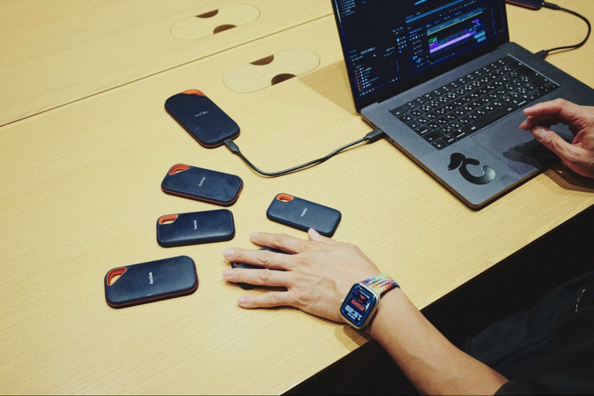 先ほど「撮影現場ではできるだけ悩まないようにしている」と話しましたが、企画や演出はじっくりと考える分、撮影や編集といった実作業はできるだけ合理的にやりたいんです。そうした意味でもMacBook Proに接続すれば、すぐにデータへアクセスでき、高速に読み書きできる「SanDisk Extreme PRO ポータブル SSD」がかかせません。