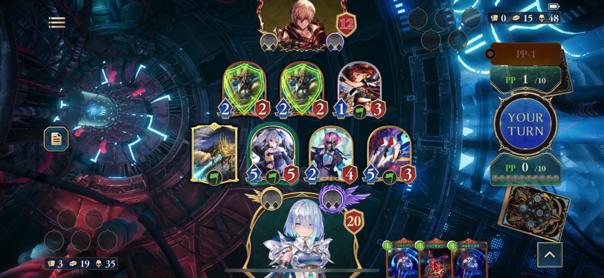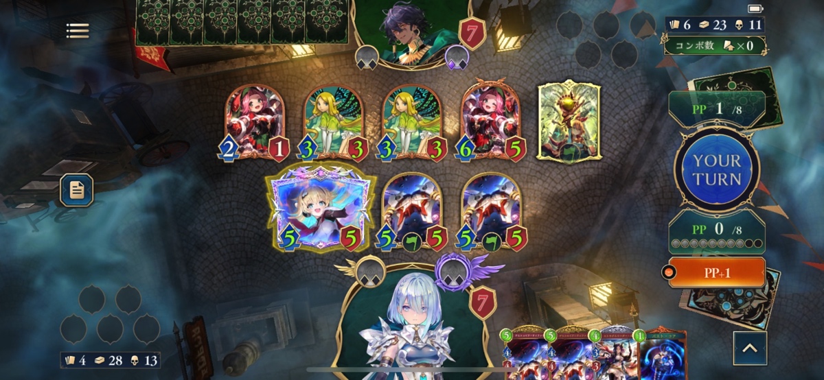 1試合目では「ごろう」選手と対戦。早速、事前の読みの対象外となるビショップと相まみえることとなった。ランクマッチでもたびたび見かけるクラスであり、デッキがしっかり回ったときの爆発力は現環境でも随一だと感じる。《セイクリッドグリフォン》超進化+《禁密の聖地》アクトの10点疾走を頭に入れながら、ライフが削られすぎないように注意して試合を運び、最後は《セイクリッドグリフォン》を耐え切って勝利を収めることができた。