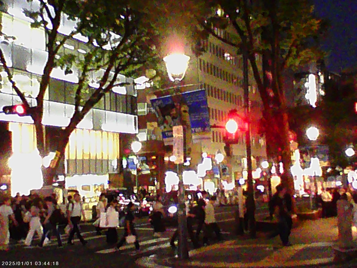 夜に撮るとこんな感じ。電飾の光が強い部分は白く飛んでしまいがちだが、これはこれで味があっていい気がする。