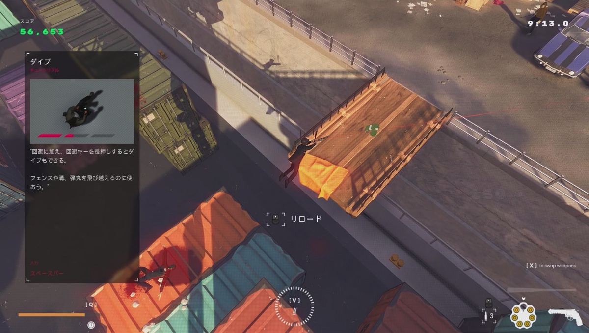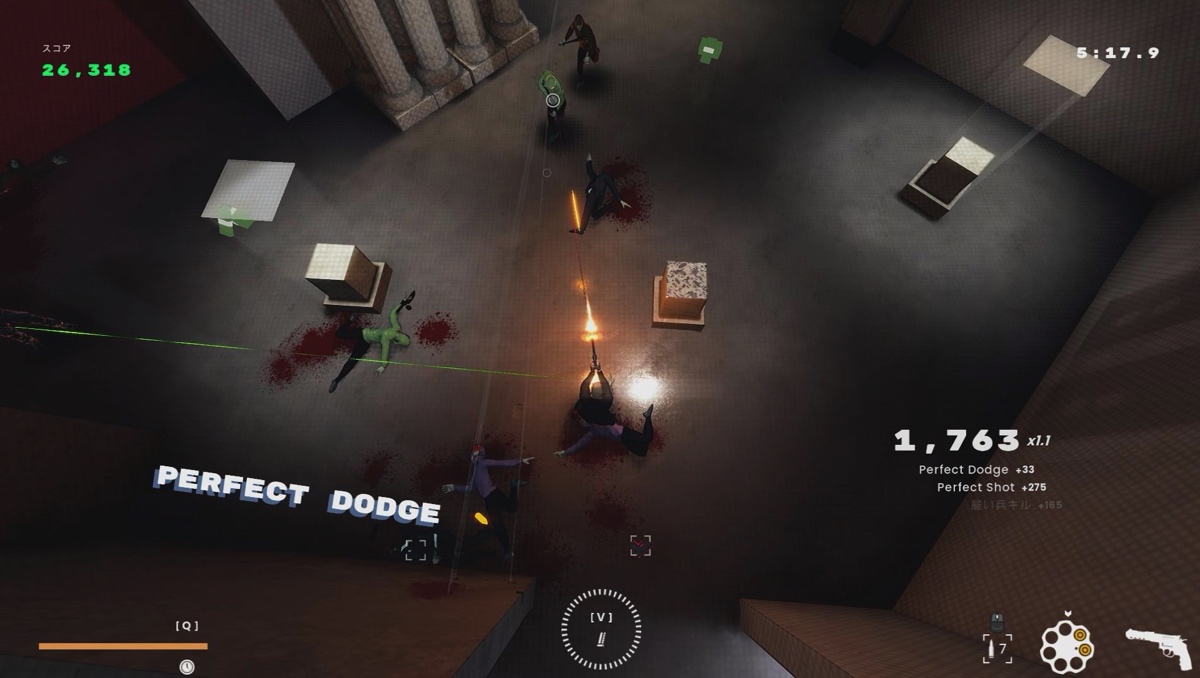 弾が切れる、敵に囲まれる、こうしたピンチで生存力が試される。そして失敗を通じて自分の欠点に気付くのだ。欠点を補うスキルをボタンに割り振る。操作系を何度も組み直す。こうしてスーツと呼ばれる暗殺者はオーダーメイドの操作系を得て、自分で描いたアクション映画の主役になるのである。この、なりきりアクションの過程はオンリーワンのプレイ感だ。