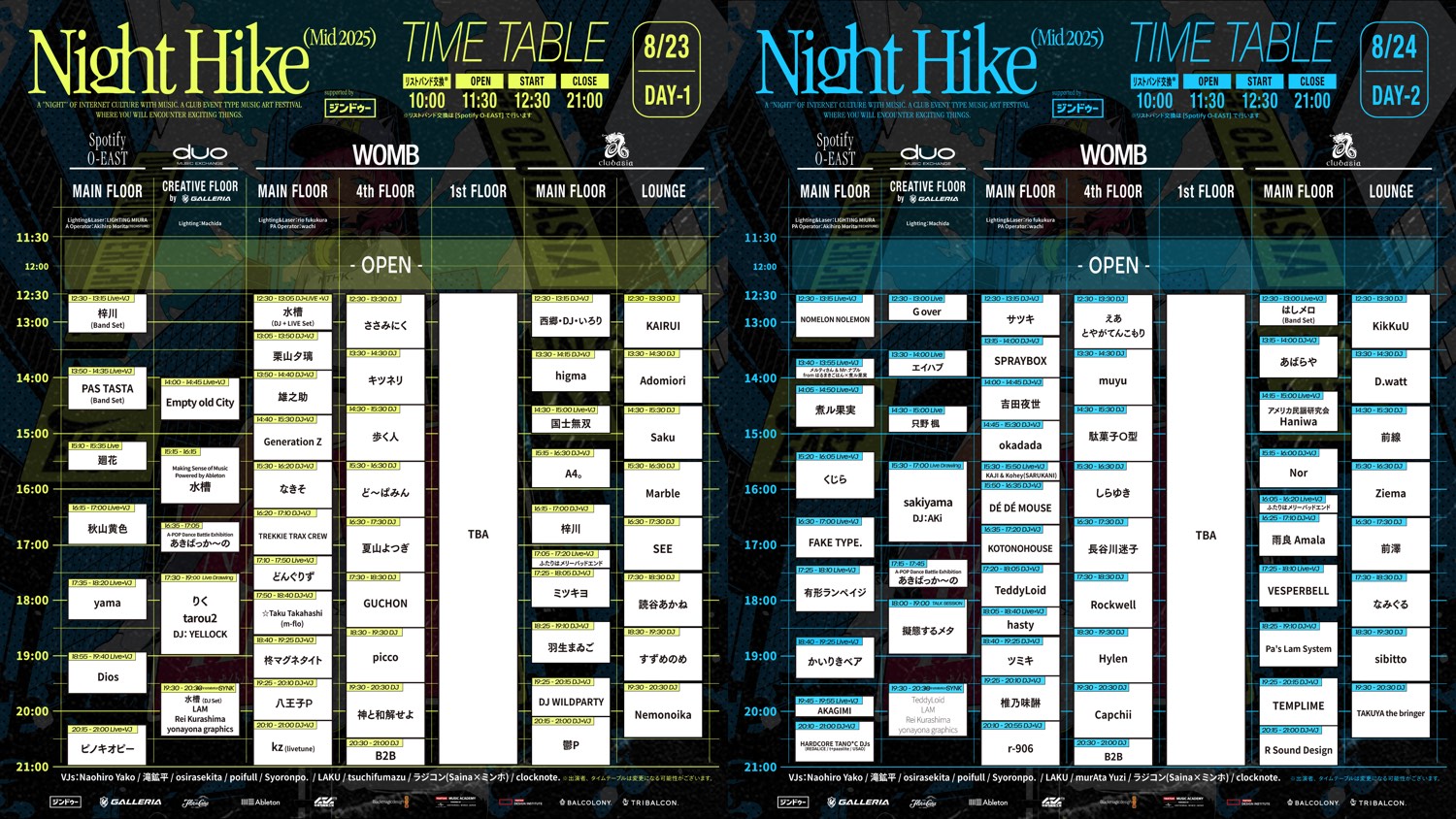 8月23日深夜には、ネット音楽レーベルである「TREKKIE TRAX」の13周年のアニバーサリーイベントとコラボする『NIGHT HIKE × TREKKIE TRAX 13th Anniversary』も開催。