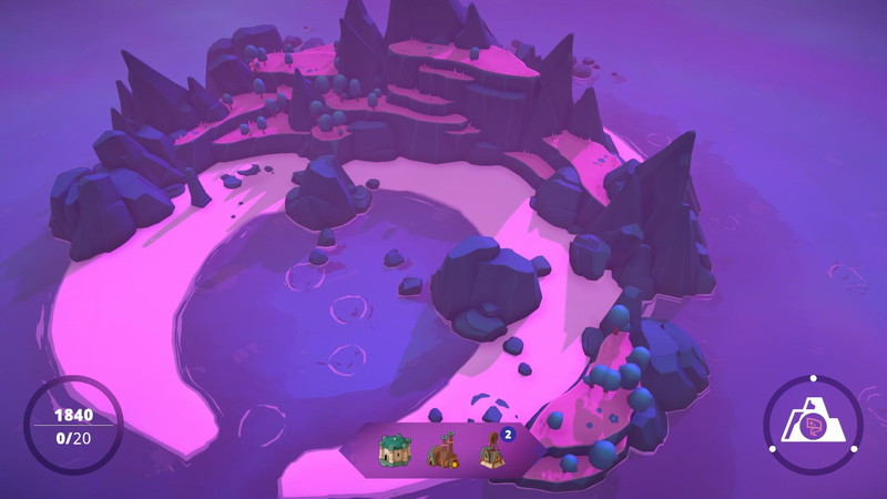 ある程度スコアを貯めると、次のマップに移行できる。マップにはいくつも種類があり、どこも平たくて何でも建てやすい島から、マグマが滴る火山島、徐々に潮が引いて低地が見えてくる島など、さまざまに用意されている。