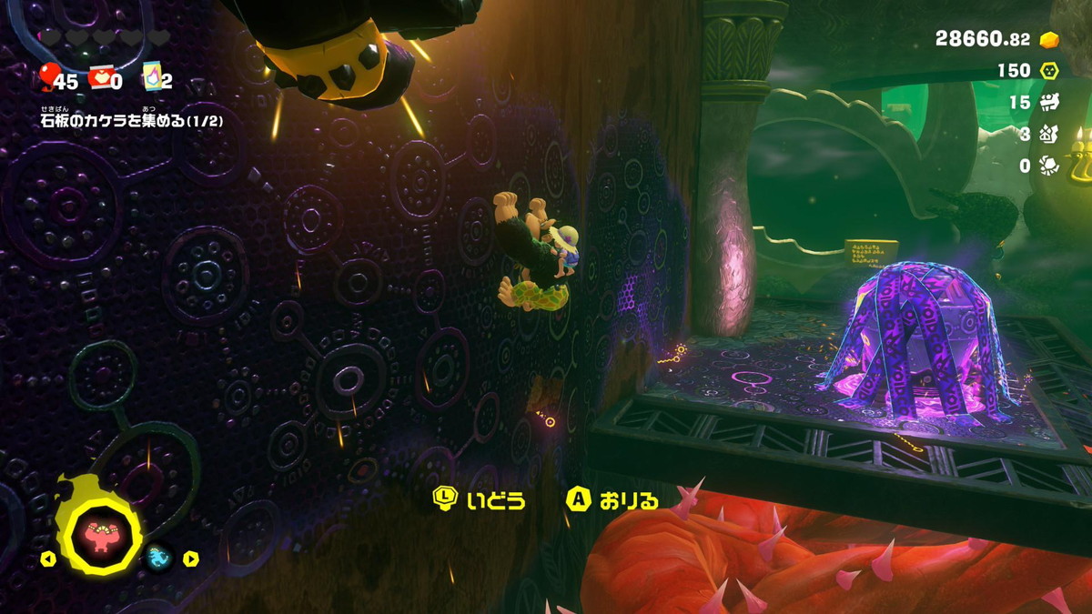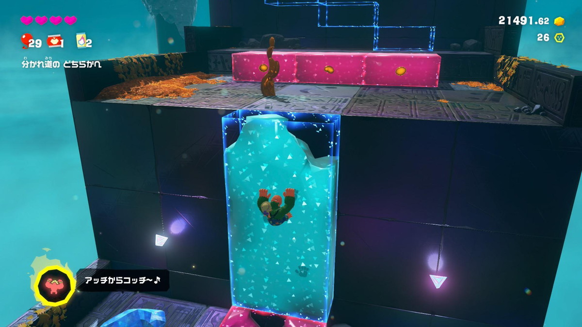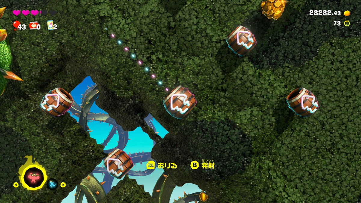 本作は『スーパーマリオ オデッセイ』同様に、道中に隠されている大量のバナモンドという収集物を集めつつ、ステージギミックを攻略したり、ボスを倒したりしながら、さらに深層へと進んでいくという作りだ。ゲーム自体は非常に丁寧な導線が貼られており、一部のストーリークリアには必須ではないバナモンドの取得以外では、攻略に困ることはないだろう。