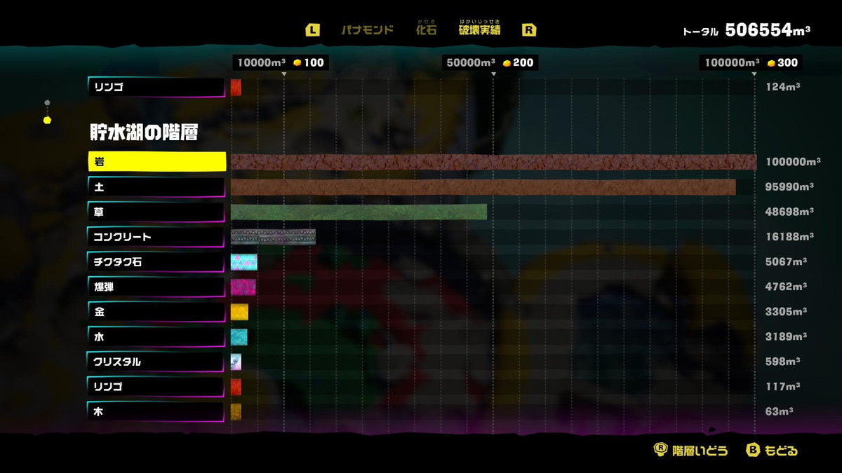 漫然とYボタンを連打し、地中を破壊しまくって宝箱やバナモンドを探すのも心地よさはあるのだが、緻密に設計されたステージ攻略を進める面白さとは相反する部分があり、何だかチグハグに感じてしまった。