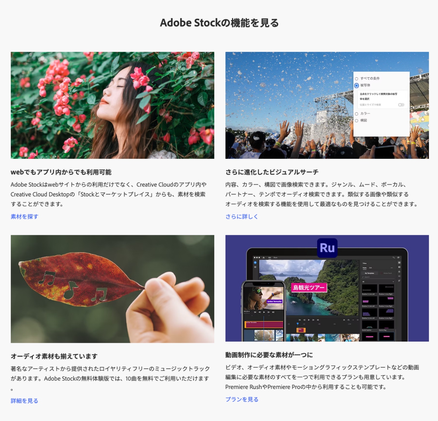 「Adobe Stock」や「Adobe Firefly」による豊富な素材が強み