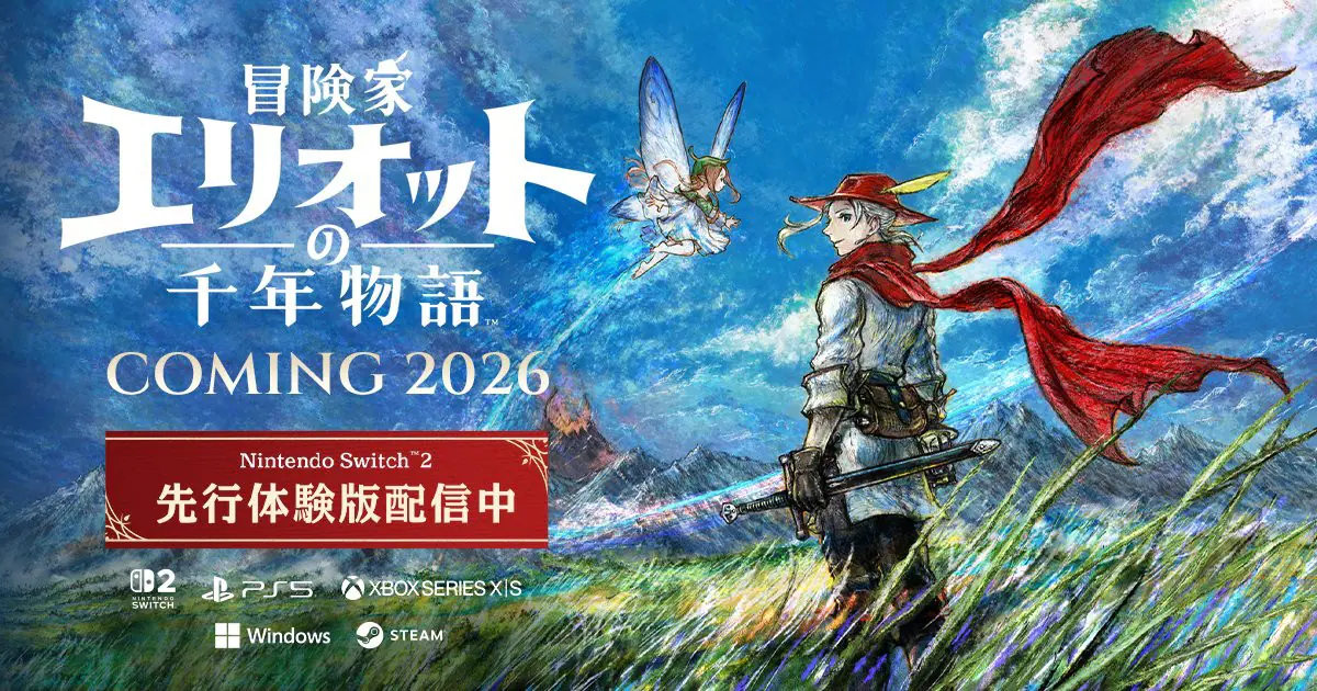 『冒険家エリオットの千年物語』は2026年発売予定。対応プラットフォームは、Nintendo Switch 2、PlayStation 5、Xbox Series X|S、PC(Windows/Steam)で、価格は現時点で未定となっている。なお、放送後には、Nintendo Switch 2で先行体験版も配信開始となった。