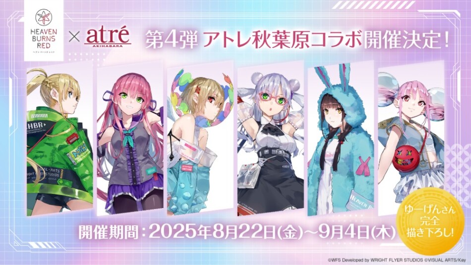 『ヘブンバーンズレッド』とアトレ秋葉原コラボが8月22日〜9月4日の期間で開催。ゆーげんさん描き下ろしイラストの31Aトレ秋葉原1の館内外をジャックする。
