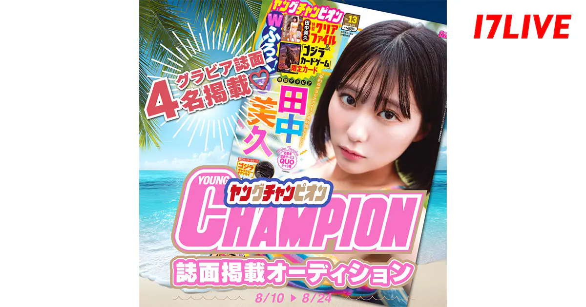 17LIVEは、青年向けコミック雑誌『ヤングチャンピオン』の巻頭グラビアページへモデルとして出演できるライバーを決定するイベント『ヤングチャンピオン』誌面掲載オーディションを8月10日より開催中だ。