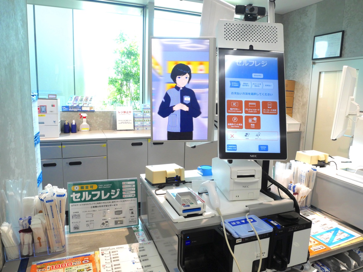 そんなレジ問題に対しての取り組みのひとつが、「3Dアバター遠隔接客」だ。筆者は最初に見たとき、AIによる接客なのかと思ったのだが、なんと画面の“向こう側”にいるのは本当の人間(店員さん)なのである。持丸さんいわく、向こうの店員さんにはこちらの姿が見えており、それによって年齢確認をすることも可能だ。
